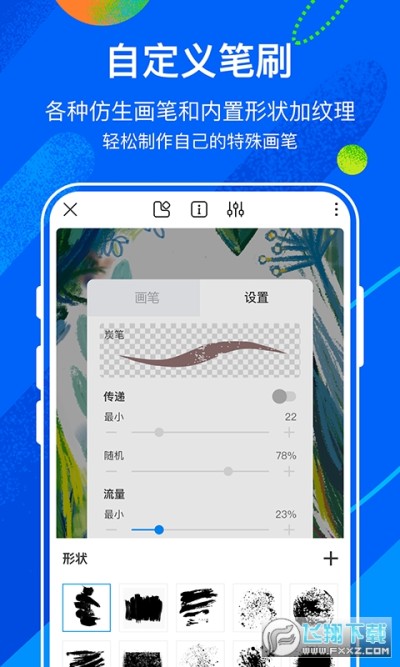 多种仿生画笔,可以模拟真实手绘效果,同时支持自定义笔刷。