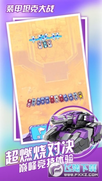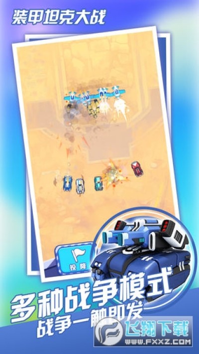 装甲坦克大战,燃烧你心中的热血。成功合成新的装甲便使其战斗在第一线,集齐你的强力队伍与对面来一场热血的战斗吧!