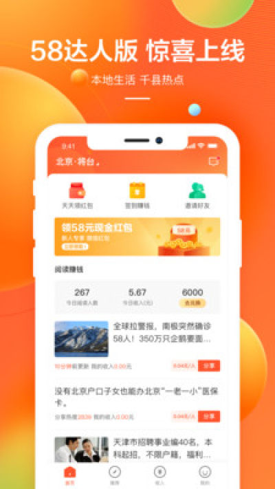 58达人版阅读赚钱app能提现吗?是真的吗?58达人版阅读赚钱app是全新推出的版本,提供丰富的资讯内容,还能分享和阅读赚钱哦,并且还支持设置大字版,让老年用户也能无障碍阅读,有需要就下载体验体验吧。