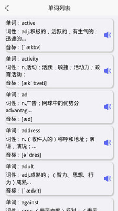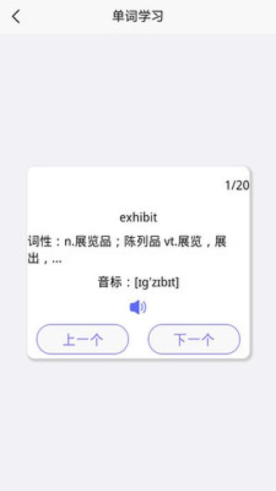多种版本教材词库,20个单词为一组一键开始单词记忆,专业单词解析注释,标准发音,是你备战各种英语考试的好帮手。