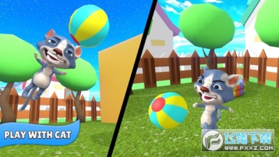 和一支可爱的猫咪玩耍,十分Q版可爱;