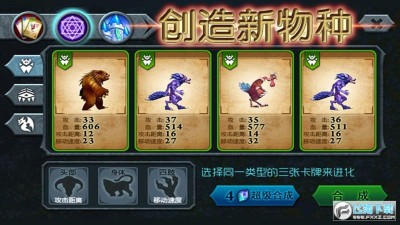 使用资源提高战斗力。我们可以直接在商店购买高级的紫色兽王,也可以通过兽王进化,将三只兽王合成一只更高级的兽王。另外在升级里升级矿石的获取速度能让我们更快速地召唤兽王。