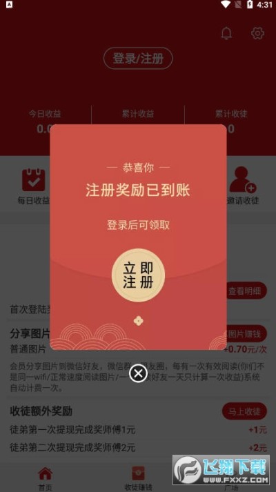 首次注册登陆送1元现金