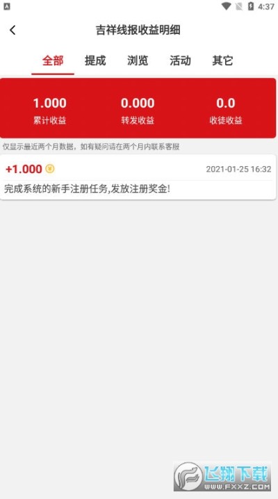 吉祥线报是一款通过做任务转发就能轻松赚钱的应用软件。任务每天都有大量的更新,只要转发就能获得佣金的奖励,新人首次注册还能获得额外的红包,快拉上好友一起坐等各种收益吧!平台每天发放的福利也超级多,只要你能够完成当天的任务就能参加平台的抢红包活动,手速越快抢的也就越多。