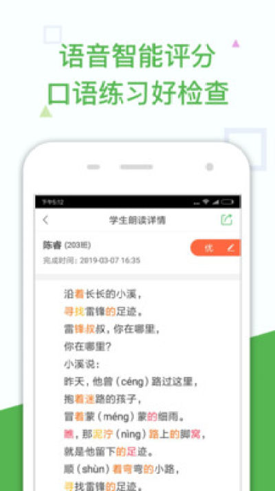 英语口语作业智能评分,纠正发音,从单词、句子、对话,多个维度考察口语和听力。语文朗读作业可检查学生课文的熟练程度,老师能在线收听学生的朗读录音,还可发个性评语和学生互动。
