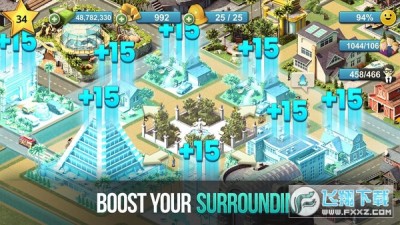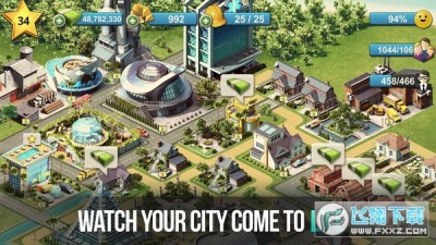 1、现代都市题材的模拟经营,采用高清精美的画风打造精美立体的现代都市,精致细腻的场景画面,模拟真实的现代都市环境