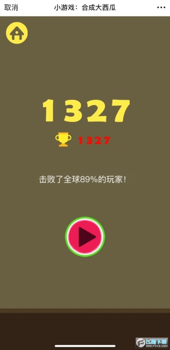 2.一开始玩建议大家有序的排列水果,遵从一个角落水果最大,越往外水果越小的感觉(类似2048),这样容易产生连续合成而节约空间。而且一旦大水果在中间很容易堆太高导致游戏失败。