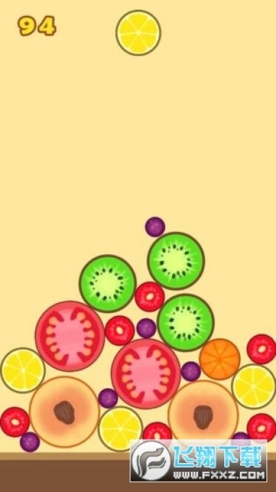 3、控制它们掉落的方向并利用物理性质来让相同的水果可以合并在一起。