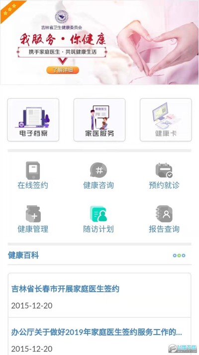 吉林家医公众版app是一款吉林本地的家庭医疗服务平台,主要是为了给用户提供家庭医生服务的,在吉林家医公众版app上可以签约家庭医生,在线查看健康报告,还有基本的健康知识等等!