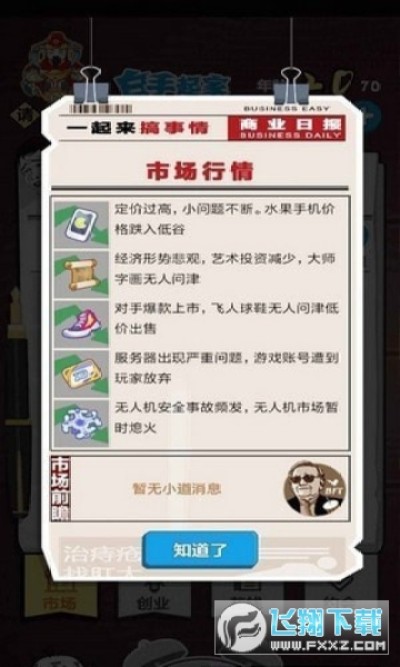 老友大作战是一款休闲益智类游戏,这款老友大作战游戏的目标是在70岁之前累积足够的财富,玩家从倒卖比特币名画、鞋子、山寨手机开始,直至创办氪金游戏公司、房地产公司、电器制造厂,老友大作战除了赚钱还能和网红主播、高中班花、明星偶像、护士姐姐或者拜金女郎结为伴侣,花钱购置豪宅豪车、打打高尔夫、来场环球旅行。也是时代的缩影。每个致富浪潮到来时,有人一飞冲天,有人苦心经营,也有人落得满盘!