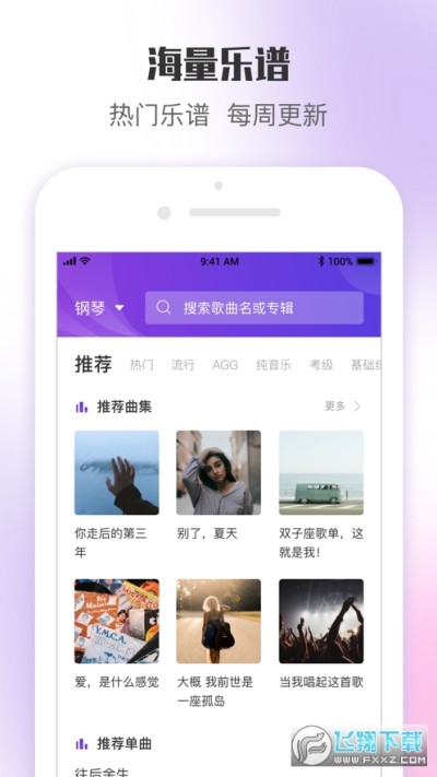 1.新增了最新的钢琴谱吉他谱小提琴谱古筝谱等乐谱专辑。2.优化了曲谱详情页使用体验。