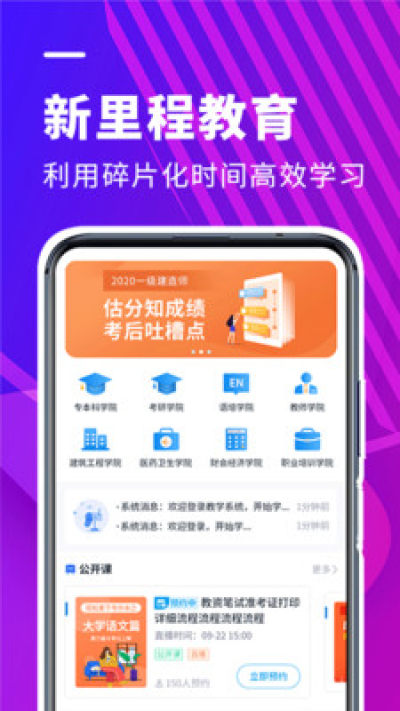 新里程教育app是一款由新里程网校推出的手机客户端,为各位用户提供各种方面的教育培训,专注于成人自考、职业资格证考试等方面,在新里程教育app上有免费的公开课也有vip课程,随时可以学习!