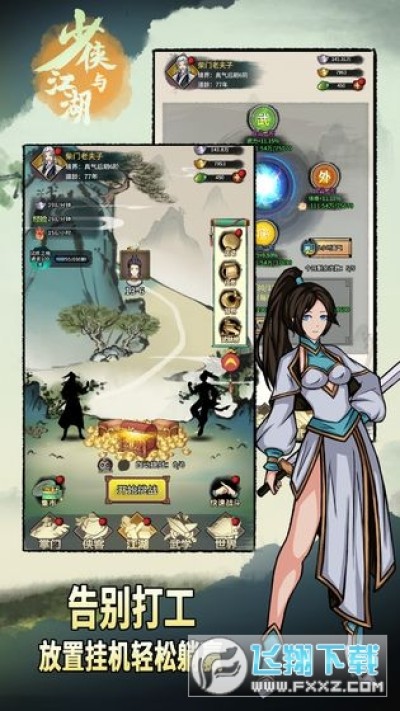 少侠与江湖是一款容易挂肝不伤的冒险的冒险游戏。加入一个全新的世界,打开你自己的多样的体验,进入到特别的副本中获得稀有的宝藏,让你的角色有更多的战斗技能反馈,让玩家的每次战斗都能有超爽的感觉。眼花缭乱的神装,古代神兵利器,强大的宠物神兽,酷炫夺目。