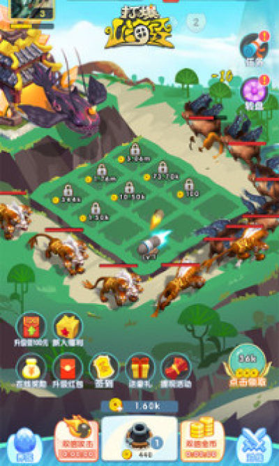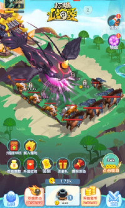 1.布置炮塔防线,击败入侵的山海经异兽军团,收集本源金币和红包。