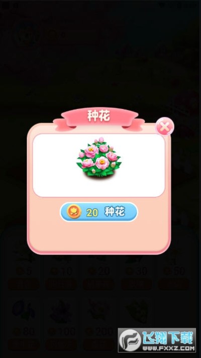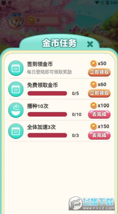 1、卡通风格的游戏画面,玩法简单有趣,通过点击屏幕来种植花朵种植,完成任务订单兑换红包奖励;
