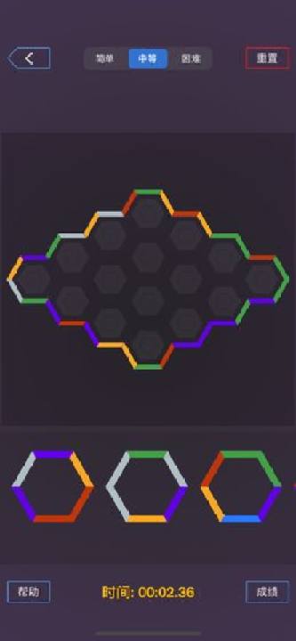 3. 在作答区,有若干个六边形,你需要把这些碎片拖动到盘面上对应的位置,同时通过点击六边形来旋转合适的方向;