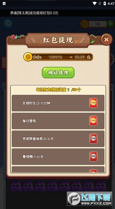 雪宝消消乐红包版游戏能提现吗?是真的吗?雪宝消消乐红包版游戏是一款类似消除星星玩法的赚钱游戏,每一关过关之后都能领到红包,而且还能参与转盘抽奖免费赢手机哦,福利非常的不错,提现方面只要0.3元即可申请。