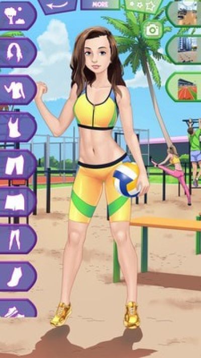3.在这款游戏中,你可以打扮成健身主题的样子,根据女孩们将要参加的体育项目来选择合适的运动衣服,是女生会喜欢的游戏类型。