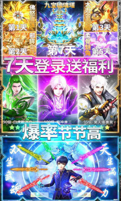 上线赠送vip10、50000元宝、500万银两,牛气冲天,升级速度大幅度增加,快速升级无卡点,大幅度减少减轻支线和剧情类任务,直接开打,7天登录送福利,爆率节节高