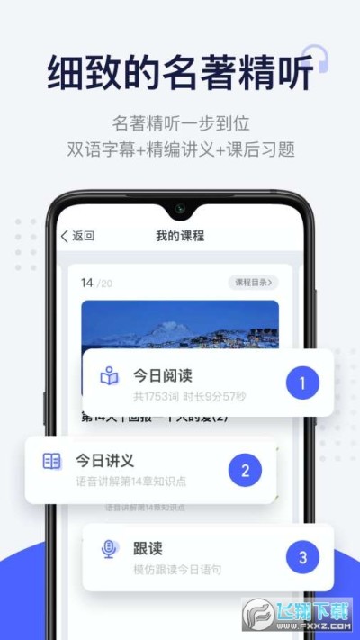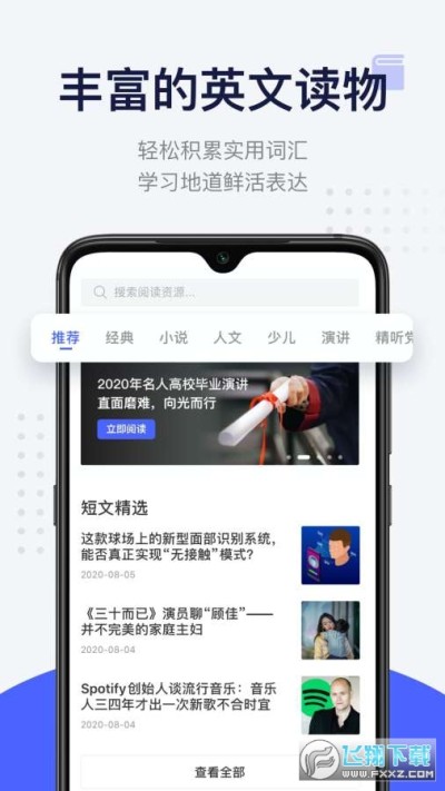 丰富的英文读物:经典名著、短篇小说、少儿读物、名人演讲......原声朗读、双语字幕,带你感受原汁原味的阅读体验;