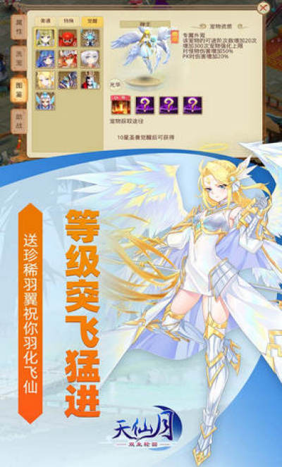 《天仙月-送万元》是一款游戏画面鲜明,玩法创新的大型MMORPG回合制多端游戏。开服即疯狂让利,游戏内赠送大量福利:10倍经验升级快;100级装备无级别;1000元圣兽登陆送;10000元充值在线领;各种稀有道具打怪即可掉落。游戏以虚构修仙为背景从而进行扩展的故事;游戏设定有6位主角,9大门派,50多种宠物,各种华丽酷炫的坐骑,翅膀,外观等。游戏采用回合制的游戏战斗模式,配以酷炫多样的技能,丰富的玩法与活动,花哨外观,自由搭配,玩出不一样的回合制!游戏以交友,轻松挂机为主题,能够引导玩家以积极向上,乐观健康的态度进行游戏,共同营造一个和谐向上的游戏社会环境,给玩家不一样的回合制游戏体验!