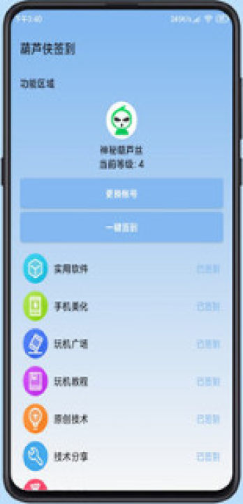 打开软件登录账号后单击一键签到即可,为您节约更多时间,玩葫芦侠的朋友必备哦!