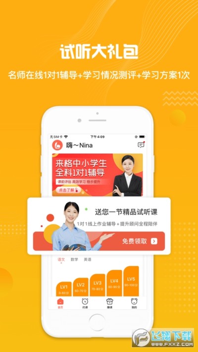 【新人福利】凡是下载"来格1对1辅导"app注册的新用户都可以免费领取一节一对一线上测评课,并在课后会根据用户的上课真实反馈制定专属的学习计划。