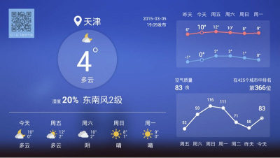这是天气通的TV版本,专为使用安卓智能电视机顶盒的用户量身打造,大家可以通过它了解天气的实时变化,方便安排出行计划,是大家生活中不可多得的好帮手!