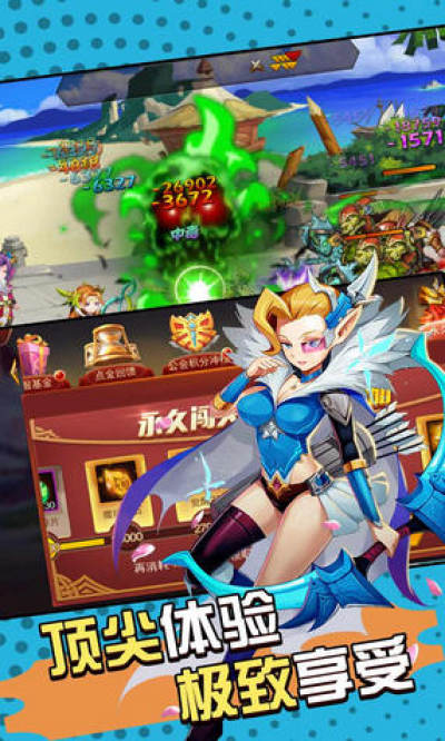 2、颠覆玩家的游戏人生,震撼玩家的幼小心灵,有多种不同的英雄职业:前排肉盾、远程物理、远程法术。极具趣味性的游戏玩法