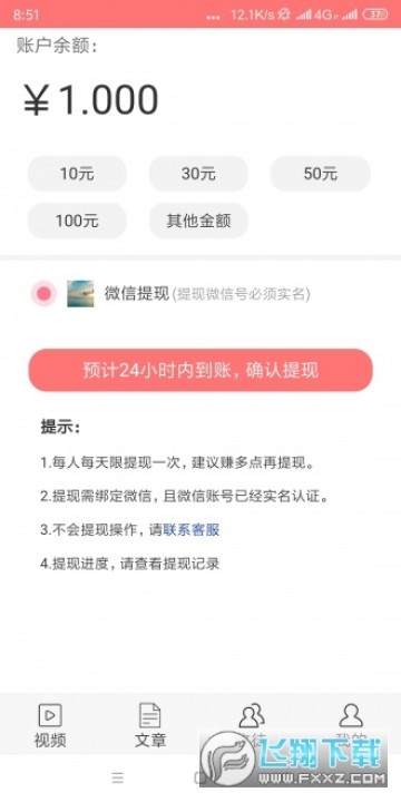 3、瑞雪网永久满10元即可提现至微信零钱里,每日可提现一次,24小时内快速到账