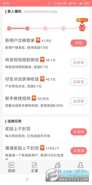 海量新闻资讯内容可以自由选择,转发被点击阅读后就会有现金奖励