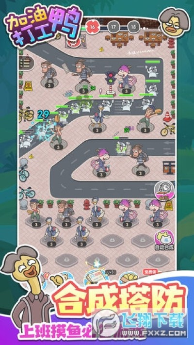 《加油打工鸭》是一款搞笑魔性的合成塔防游戏。在游戏中,你将扮演打工鸭,体验从进城务工人员通过努力打工一步步到出任CEO,赢取白富美,走上人生巅峰的魔性故事。希望能够所有打工人带来快乐!喜欢的小伙伴们快来下载体验吧!