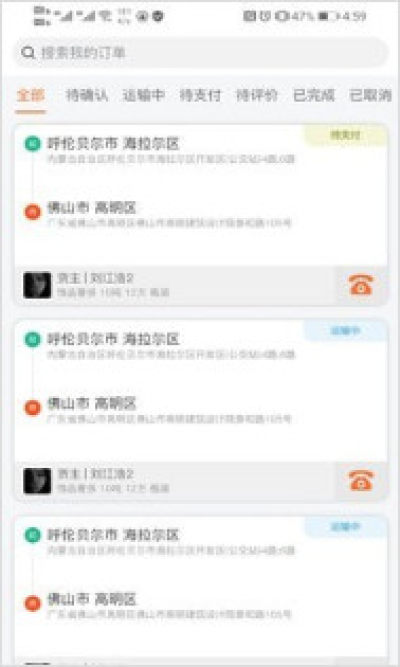4、货灵鸟司机端app帮助司机处理订单,新订单第一时间接收处理,给有需要的人提供服务。