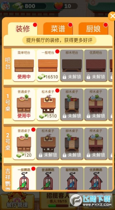 解锁和升级厨娘,提升做菜速度