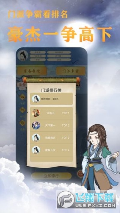 《我的门派天下第一手游》是一款模拟类的手游,经典的武侠题材,不断建立经营自己的门派,简单的控制操作,招募弟子加入你的门派,装备强力的装备,放置挂机获取经验,提升自身实力,努力将自己的门派发展成天下第一,赶快下载体验吧!