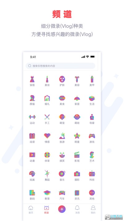 5. 频道细分微录(Vlog)种类,方便寻找感兴趣的微录(Vlog)。 微录(Vlog)为全球微录主(vlogger)提供一个便利,开放,共赢的Vlog垂直社区。看微录,学微录,管理微录就来微录。