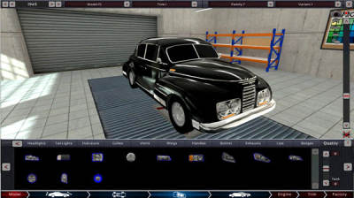 灵活的汽车设计师,在你的车库,选择不同类型和材料的底盘,设置发动机和传动系统的位置,以及变速箱、悬挂、刹车、轮胎等等。