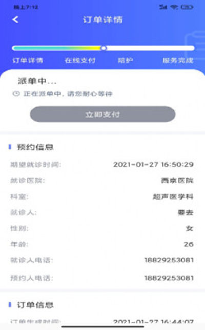2、主要是为就医患者提供线上下单寻求专业人员陪同就医,陪诊员线上接单,线下为患者提供专业的医疗陪同就医的服务。