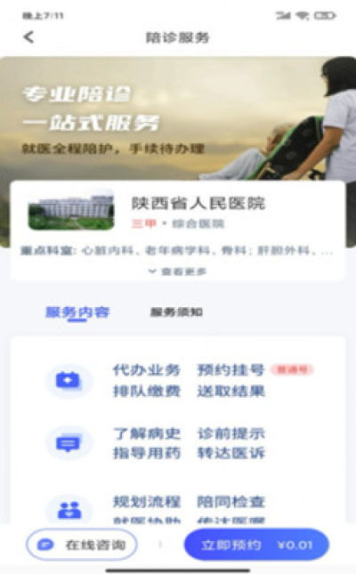 1、就医陪诊服务平台,提供专业陪诊服务,省时更省心,就医全程陪同,为患者带来更便捷的看病陪同服务;