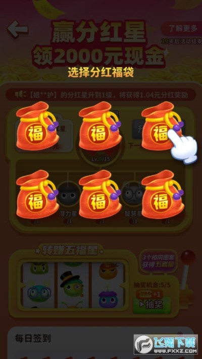 (1)通过开启福袋有一定概率可获得一只“分红星”,福袋可通过完成每日签到、游戏通关、抽奖要求等获得,具体要求和获得的奖励以本产品相应页面显示的为准;