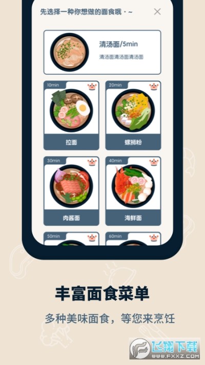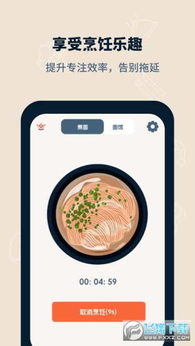 专注面馆app是一个帮助提升专注力的手机软件,以面食为特色,每一种面食的做法时间是不同的,在这段时间内,玩家需要保持专注,专心于手中最重要的事情,不能使用手机哦,有需要就下载专注面馆app体验吧。