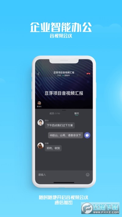 2、音视频及会议:高效的发起多人语音会议、视频会议;大方数视频直播、多端同步随时随地观看直播