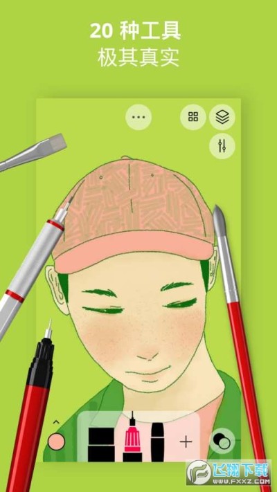 1、数十种高仿真画笔工具,仿佛在纸上用着画笔作画一样,让你体验各种风格的艺术创作。