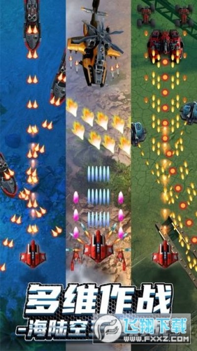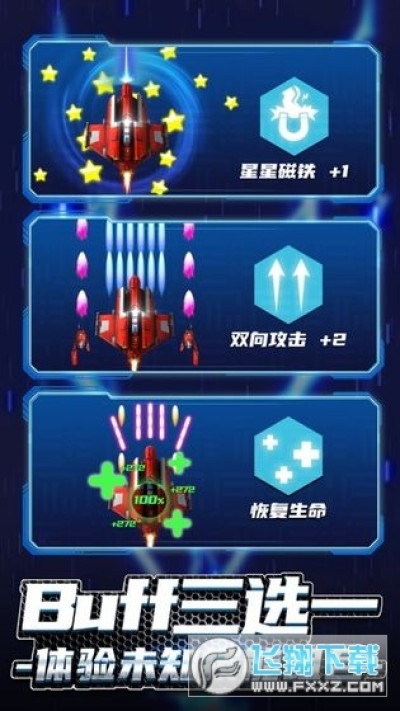 激战、爽快、突袭,击溃,所有的攻击都行云流水,这就是无双战机带来的超级体验。随机三选一的升级功能,让战机的攻击方式在战斗中自由搭配、任意组合,DIY攻击套路让你体会到更多爽快感受。