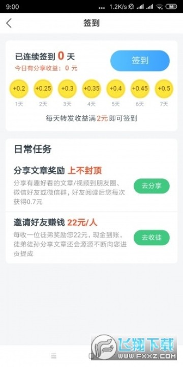 2、登录成功后,点击“转发赚钱”或者“视频”页面任选一篇文章或视频转发到微信,被点击阅读后就有现金奖励