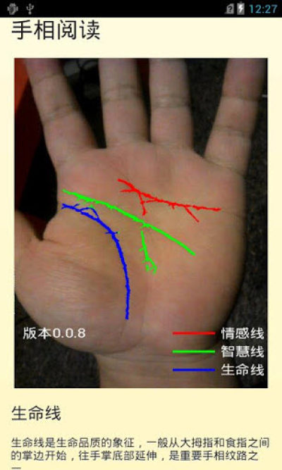 手相大师是一款通过手机摄像头拍照来分析手掌图像的应用软件,其通过结合中西方的分析方法,给大家的性格进行准确的分析,同时还可以将结果分享到微博里哦!