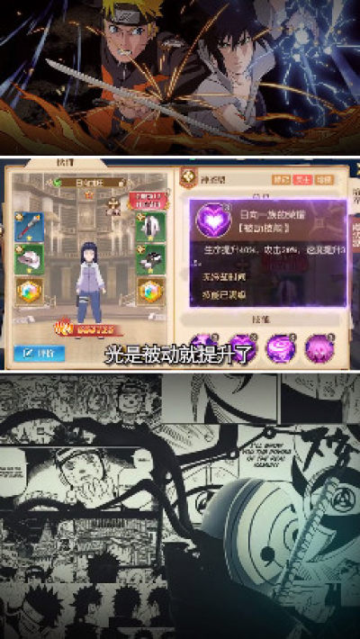 布阵中有前排和后排一共6个位置,玩家战斗前可以通过拖拽的操作调整阵型,进行战前的策略博弈,重燃火之意志,集结你的最强忍队!火影超变满V版以“火影忍者”动漫原著为背景,再现原著中各主角的成长和羁绊,为忍者迷们再次开启忍者世界,加入鸣人的队伍,重燃热血火影梦