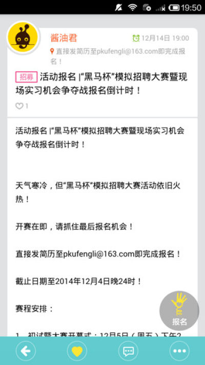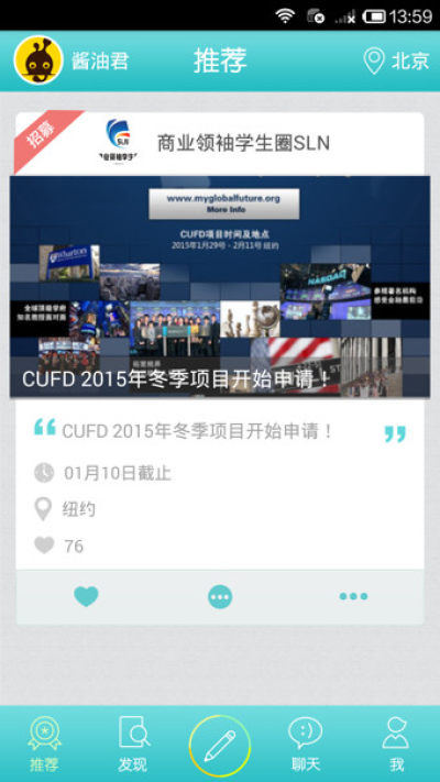 小酱油是一款面向于大学生的活动分享平台,目前已经覆盖北京所有高校。小酱油一直以让用户获取最大价值为宗旨,力求为用户提供最全、最快、最准的活动资讯。