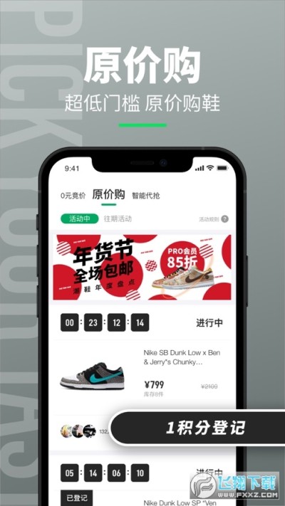 【重磅福利】可低价捡漏、可抢购新品,品类众多,人人皆可参与,致力于为所有用户打造不一样且有趣好玩的购物体验。平台以实时竞价的形式,进行潮鞋单品的竞拍,重新定义潮流好货的真正价值;另有原价购活动加持,热门爆品,原价买入,让喜欢变得更加自由。