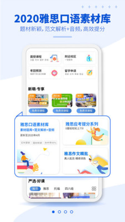 5、雅思专区:实时更新雅思口语题库(素材题库+范文解析+音频),0基础轻松上7分应考提分系列以及作文批改,专项轻松提分